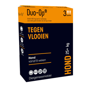Wanneer er een vlooienplaag optreedt, is het altijd belangrijk dat je alle huisdieren in het huishouden tegelijk behandelt tegen vlooien. Heb jij een hond, kat en een konijn? Dan is Duo-Op een ideaal product waarmee je alle huisdieren in 1 keer kunt behandelen. Let uiteraard wel op dat je het juiste product voor elk huisdier koopt. Er zijn verschillende varianten voor hond, kat en konijn, verdeeld in gewichtsklassen.
