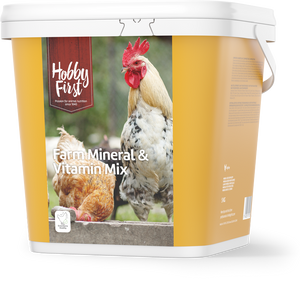 HobbyFirst Farm Mineral & Vitamin Mix is verrijkt met vitaminen en mineralen voor een gezonde kip. Dit supplement zorgt voor zowel een sterk skelet als voor stevige eieren. Dankzij de lekkere granen wordt het natuurlijk scharrelgedrag gestimuleerd. De schelpen en het grit dragen bij aan een goede spijsvertering. _x000D_